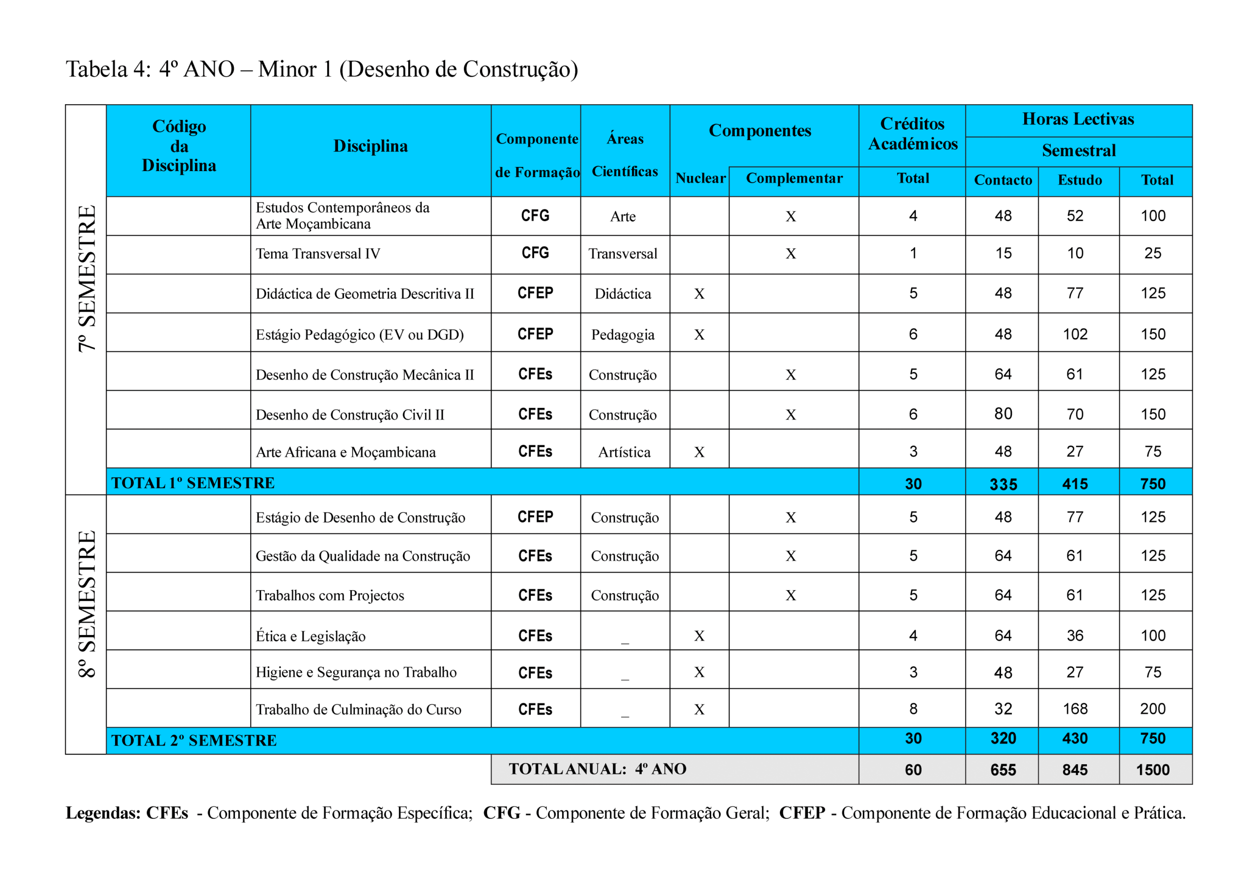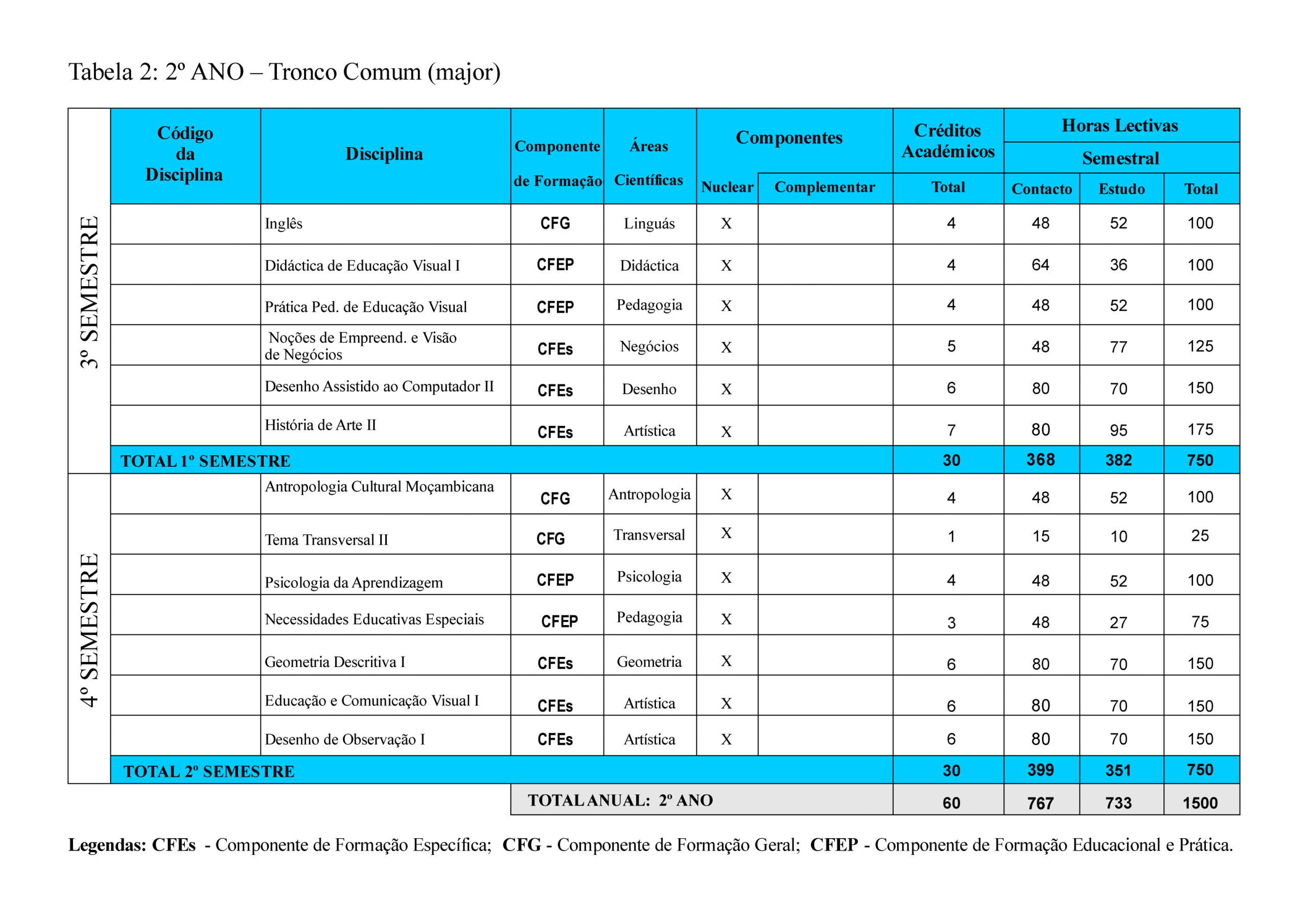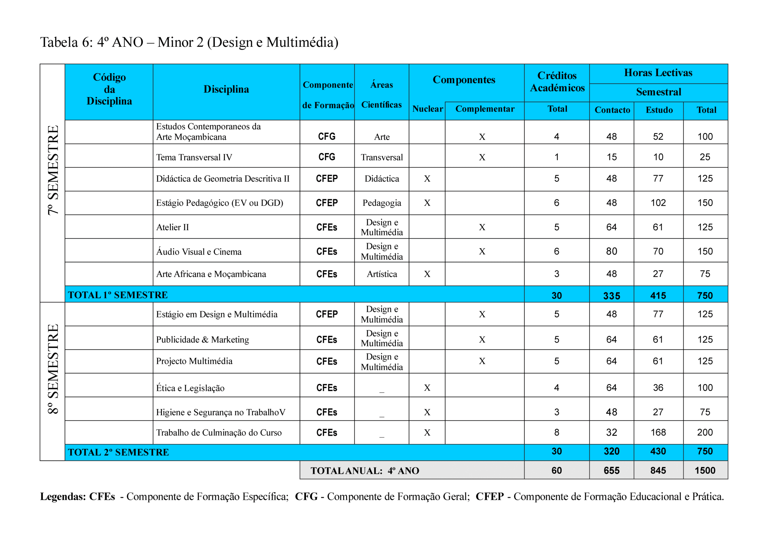 Clique no link abaixo para descarregar o plano curricular do curso de Licenciatura em Educação Visual.